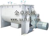由U形容器、螺帶攪拌葉片和傳動(dòng)部件組成;U形的長(zhǎng)體筒體結(jié)構(gòu),保證了被混合物料(粉體、半流體)在筒體內(nèi)的小阻力運(yùn)動(dòng)。正反旋轉(zhuǎn)螺條安裝于同一水平軸上,形成一個(gè)低動(dòng)力高效的混合環(huán)境,螺帶狀葉片一般做成雙層或三層,外層螺旋將物料從兩側(cè)向中央?yún)R集,內(nèi)層螺旋將物料從中央向兩側(cè)輸送,可使物料在流動(dòng)中形成更多的渦流。加快了混合速度,提高混合均勻度;